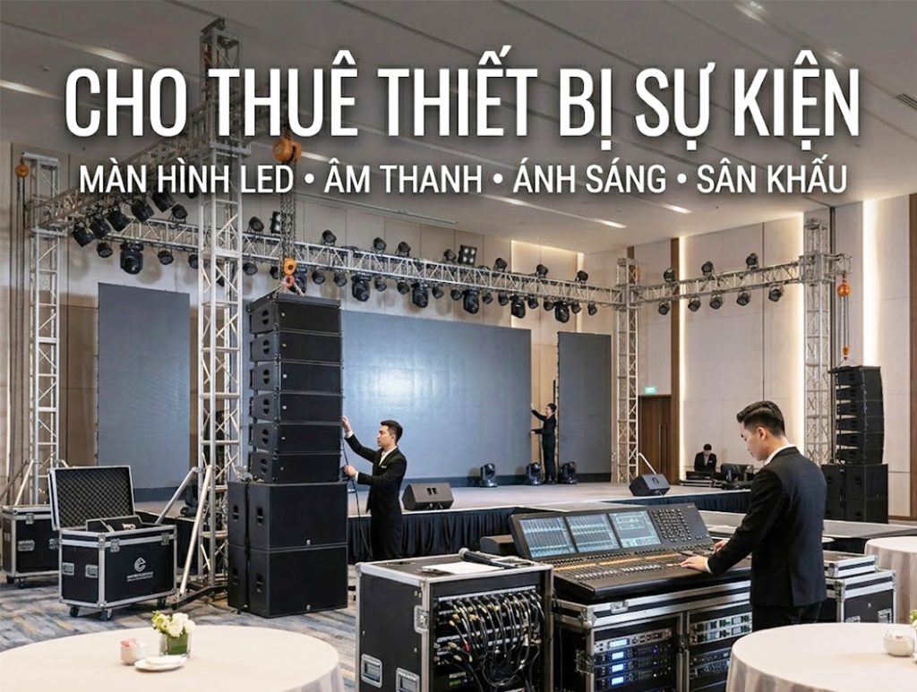 Cho thuê thiết bị sự kiện trọn gói: Âm thanh, ánh sáng, sân khấu, trình chiếu. Hỗ trợ kỹ thuật chuyên nghiệp, lắp đặt nhanh chóng, chi phí tối ưu.