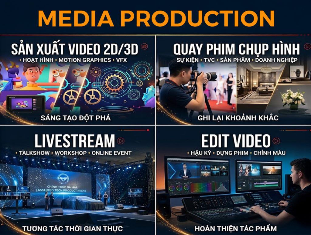 Sản xuất video 2D & 3D Quay phim & chụp hình Edit video trọn gói Livestream đa nền tảng
