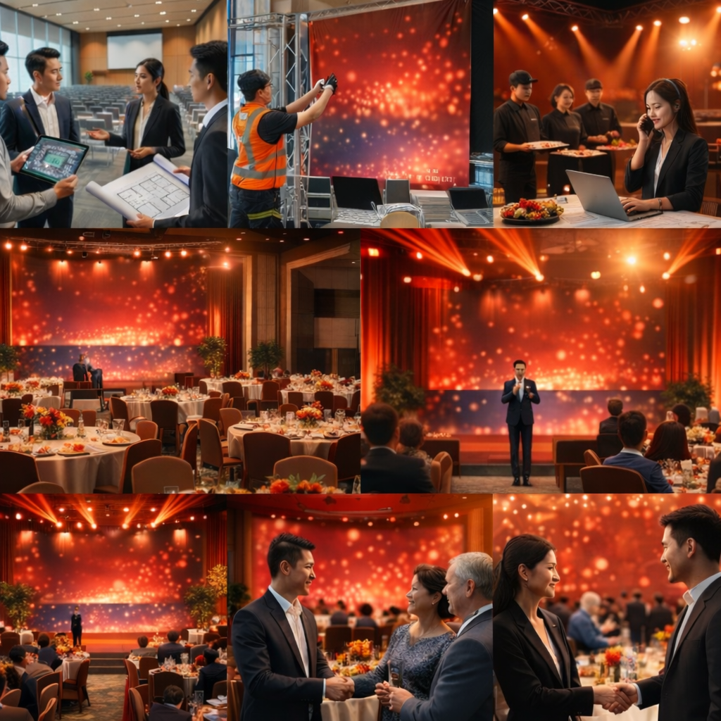LCT tiến hành setup không gian, sân khấu, âm thanh – ánh sáng, chuẩn bị MC, lễ tân, kỹ thuật và các hạng mục liên quan. Mọi khâu đều được kiểm tra kỹ lưỡng trước ngày diễn ra sự kiện.